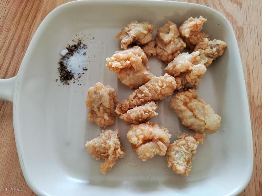 炸好的鸡米花配上椒盐,就是一道不错的下酒小菜。
