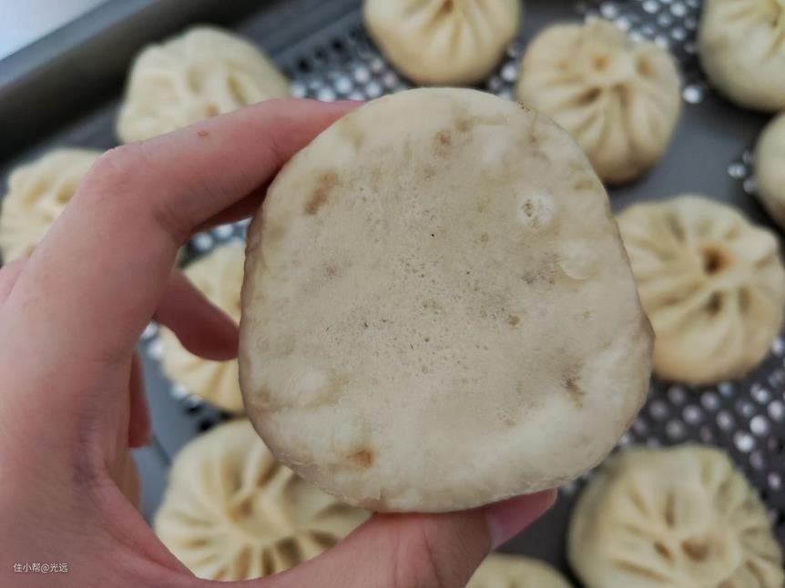 这是蒸好后的效果,可以看到包子外皮发酵得很均匀。