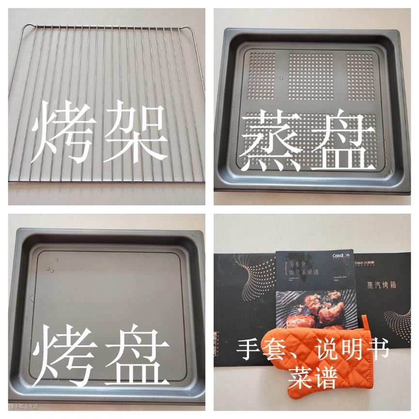 而它的确也附赠了烤盘、蒸盘与烤架,正好能够一口气放入蒸烤一体机中。
