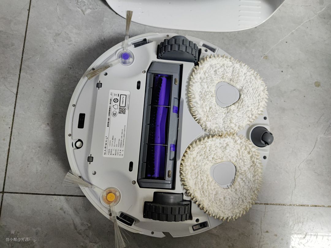 一键开启,我家同时有木地板和瓷砖,我会提前设置好地板材质,它就会通过识别地板材质自动调节拖地压力以及推荐湿度,木地板条件下,拖布1分钟会进行180次旋转并会施加了最大127N的下压力,以及推荐略干湿度,瓷砖地板条件下,拖布会施加12N的下压力,并且推荐正常湿度,不管是洒在厨房已经变干的酱油渍还是地板上的番茄酱都能清洁到位。