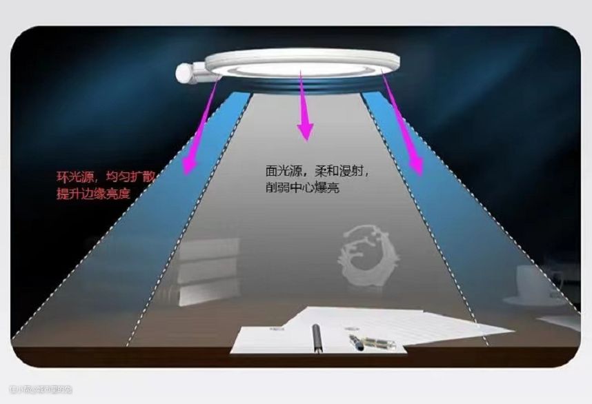 看起来确实很厉害,不过这款主打太阳光谱,似乎没有提到太阳光照度,真正对眼睛好的是太阳光的照度,似乎有点避重就轻,所以全光谱护眼的命题值得深思。 我还另外发现了一个它的优点,它还有一个多重折射的功能,能够减少光刺激。尤其是它的双重瓦解,内腔采用双梯形结构,并搭配反光材料,光就可以从不同角度充分反射,这就是第一重瓦解,第二重是它的外部采用高密度菱晶板滤光,有效减少笔影和重影。