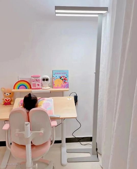主打全桌护眼光,护眼光的覆盖面积达到了国标的3.8倍,满足了《儿童近视防控》的全部要求。灯光均匀不刺眼,超长的矩形灯头,带有微弧形的发光面。