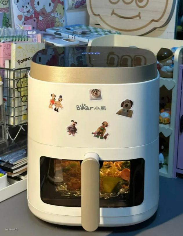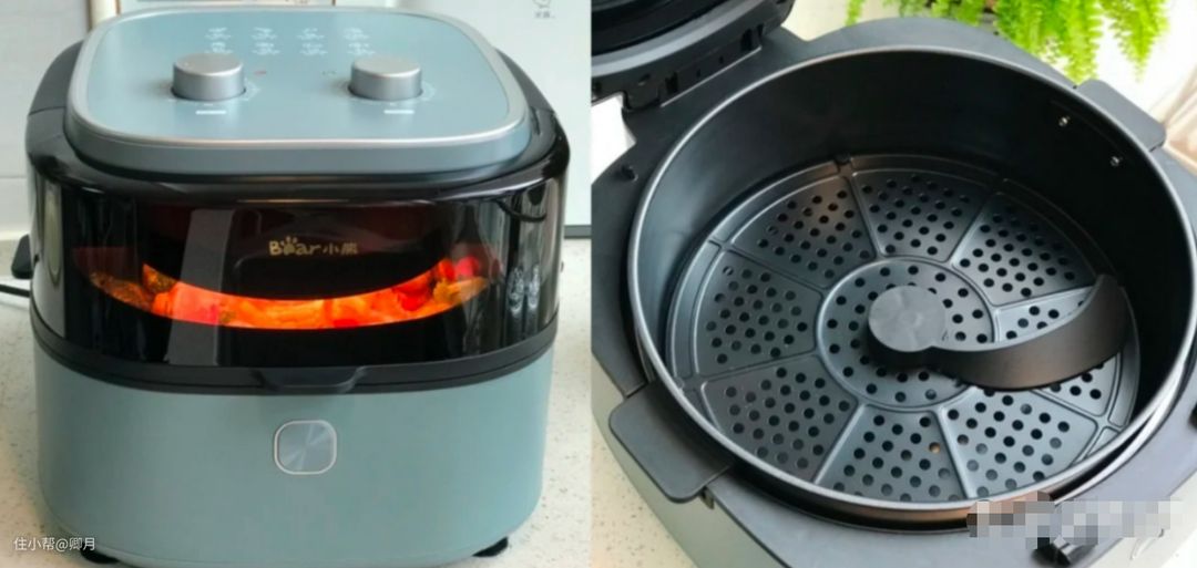 如果预算不多,但是觉得给女朋友买个空气炸锅很不错的话,还可以考虑小熊E3这一款,价格上更加让人容易接受,不过相对地少了一些功能。虽然没有了自动翻面,但它有翻面提醒功能哦~当食物到了应该要翻面的状态的时候,机器就会发出提醒,同样可以大大降低翻车的概率。和G5一样,都可以底部加水来微蒸汽嫩烤,这样食物做出来的效果口感更好。这一款是米白配色的,简约又时尚,颜值也非常高。