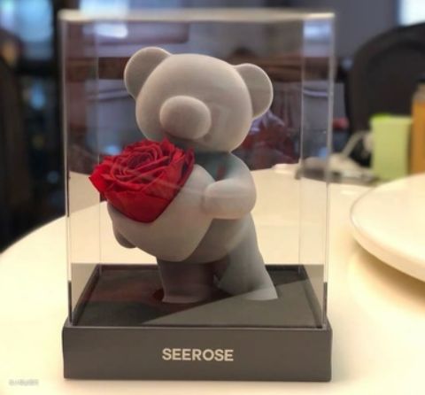 11.SEEROSE永生花玫瑰爱心站立熊摆件礼盒送情人教师节表白生日礼物