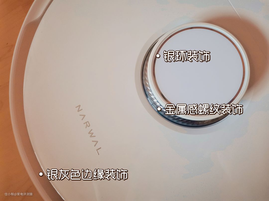 主机外沿的银灰色边缘装饰、雷达传感器边缘的金属感螺纹装饰以及银环设计,都让主机在简洁圆润中多了一丝科技感,质感提升了不少。