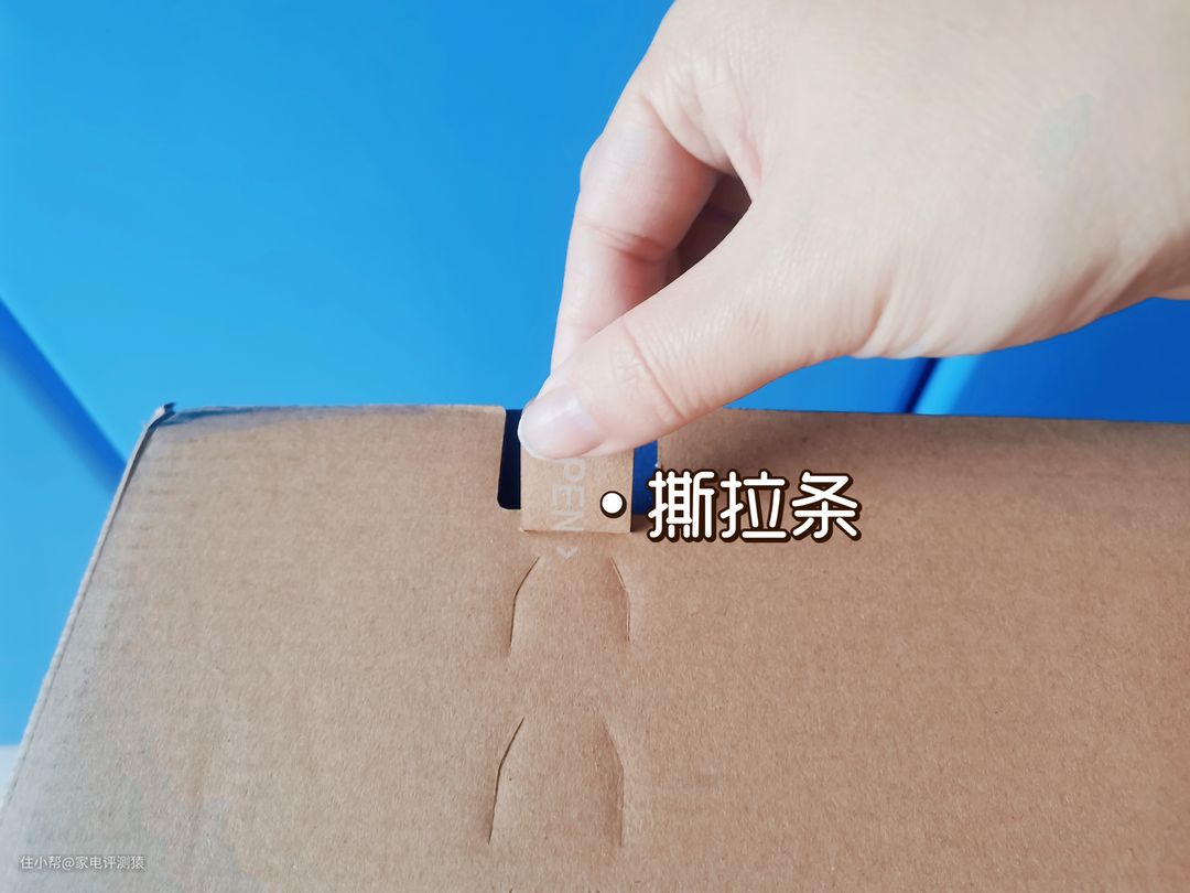 外箱包装上专门设置了撕拉条,开箱不用找刀子,直接上手就能打开: