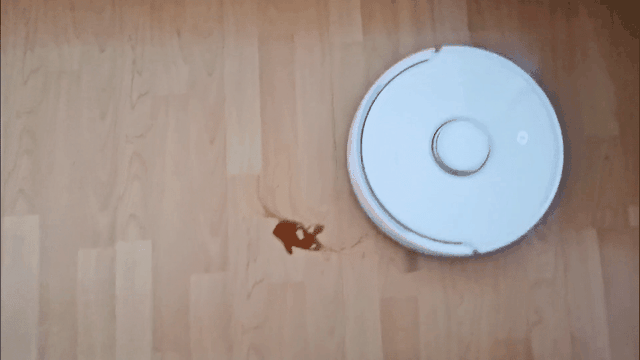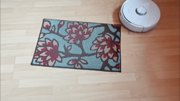 可以看到,机器处于脚垫上的时候,清洁速度明显变慢,而从听觉上我也能够感受到它的吸力变大了。