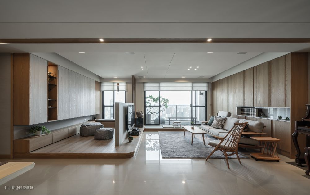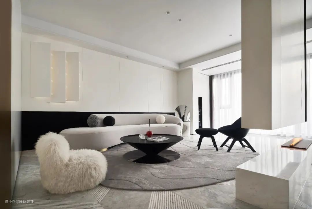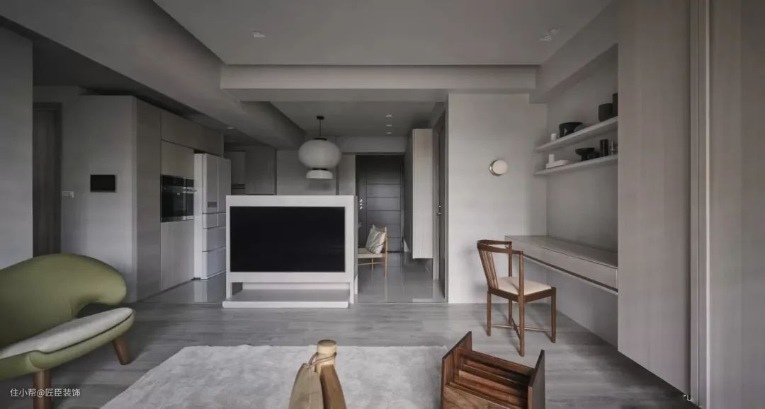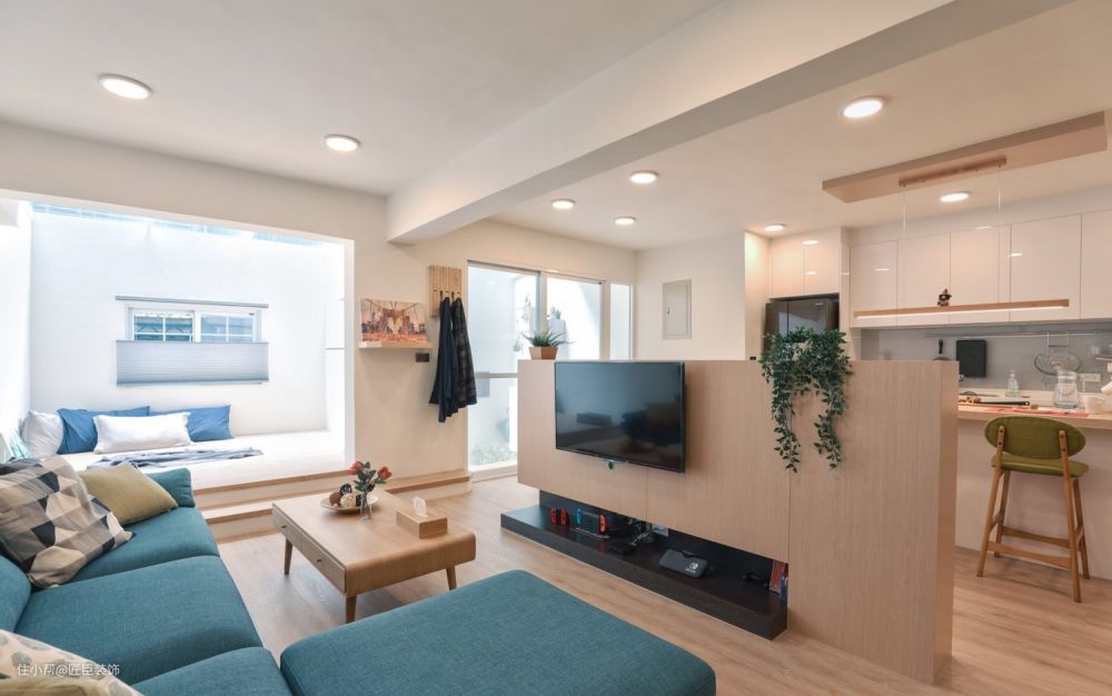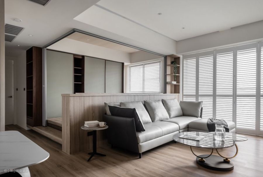 想要一个大客厅却又希望功能区可以划分明确时,也能用到半墙设计,相比于整面墙体,半墙既可以作为隔断也不妨碍互动。