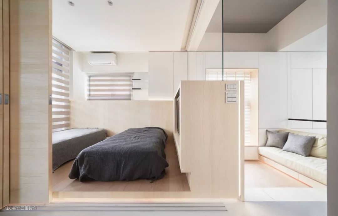 用柜体做半墙隔断,还可以兼顾收纳功能,一举两得。