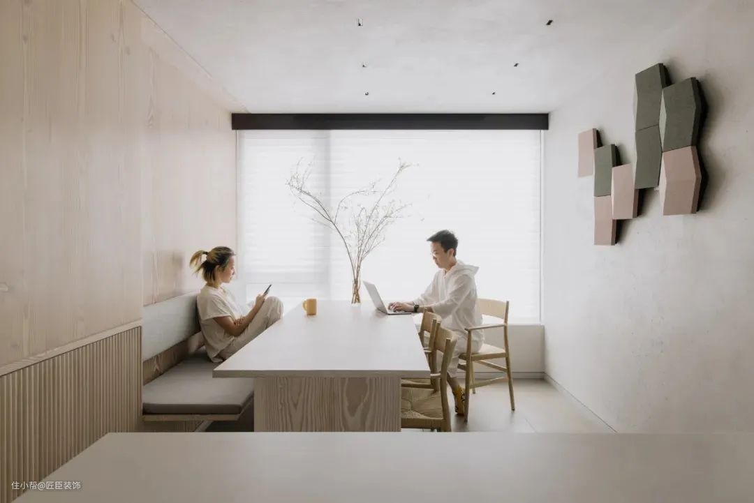 对于想做开放式书房,又想拥有隔断的房子,可以将原始的非承重墙拆除,设计半墙隔断。