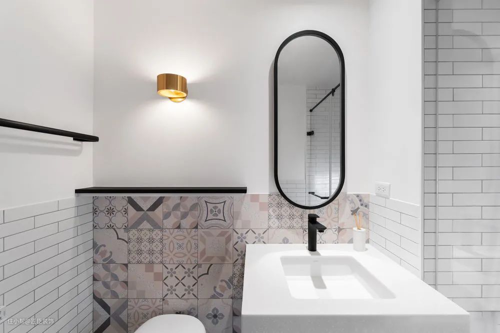 瓷砖作为装修中最常用到的主材,半墙设计怎么能缺了它?用瓷砖将墙面分色设计,多数用在卫生间↓↓↓