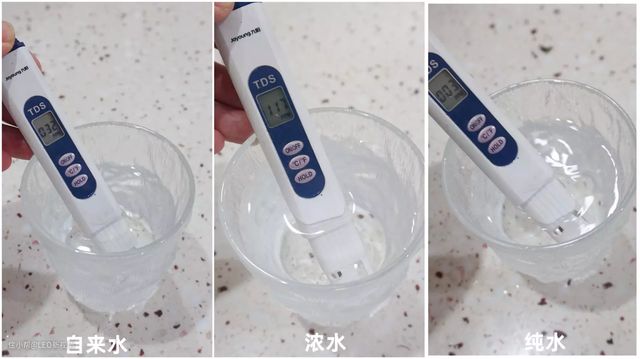 机子本身是带TDS检测的,不过为了对比效果,我用TDS笔测试了自来水、废水和纯水三个TDS值。这里说明下,因为我家的自来水装了前置滤芯,已经过滤了泥沙和余氯,但并没有达到直饮的标准,实际测试TDS是32,通过净饮机出来的水是3,完全符合直饮标准了,而最后留在水箱里的废水TDS浓度达到了117。