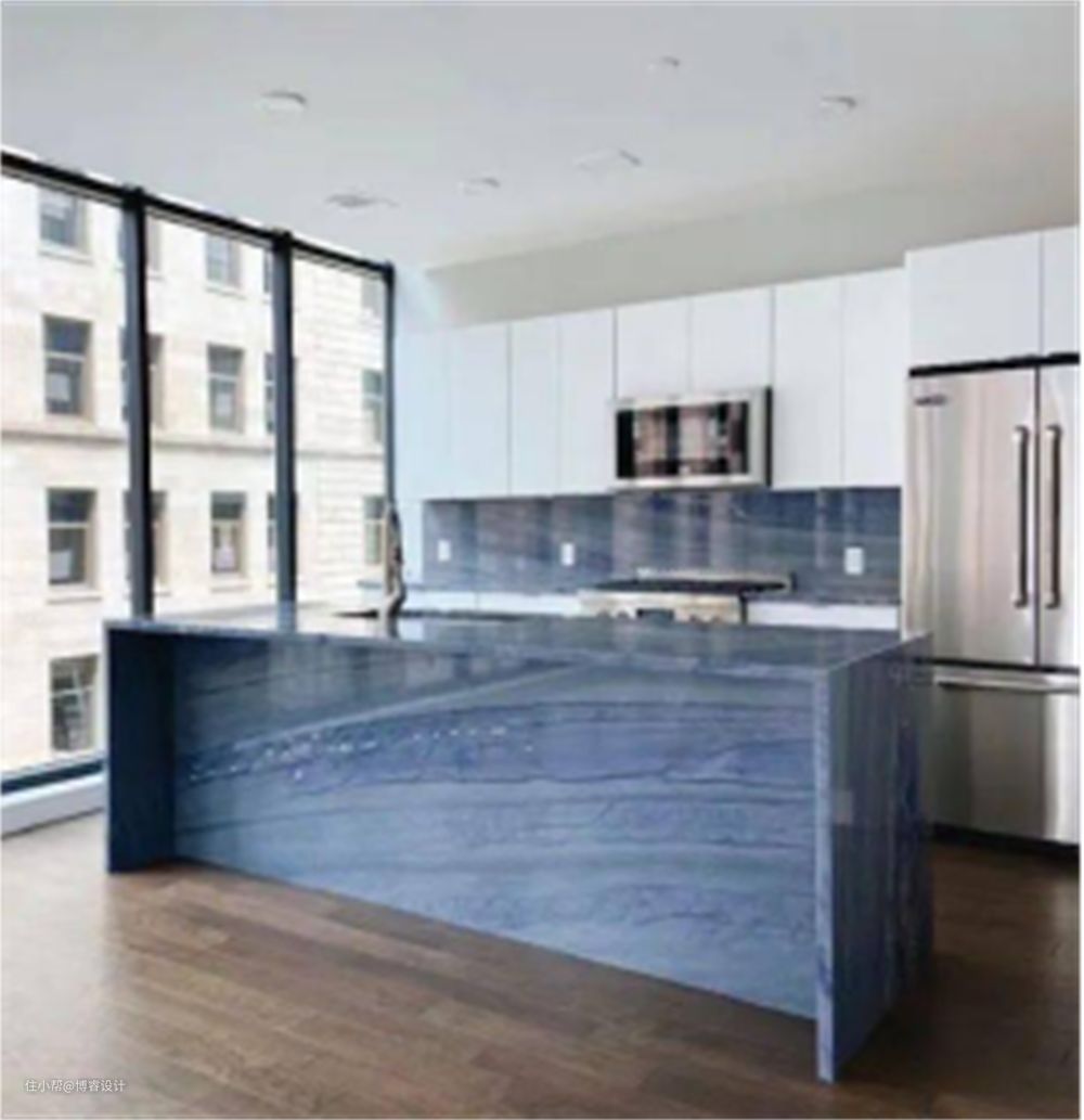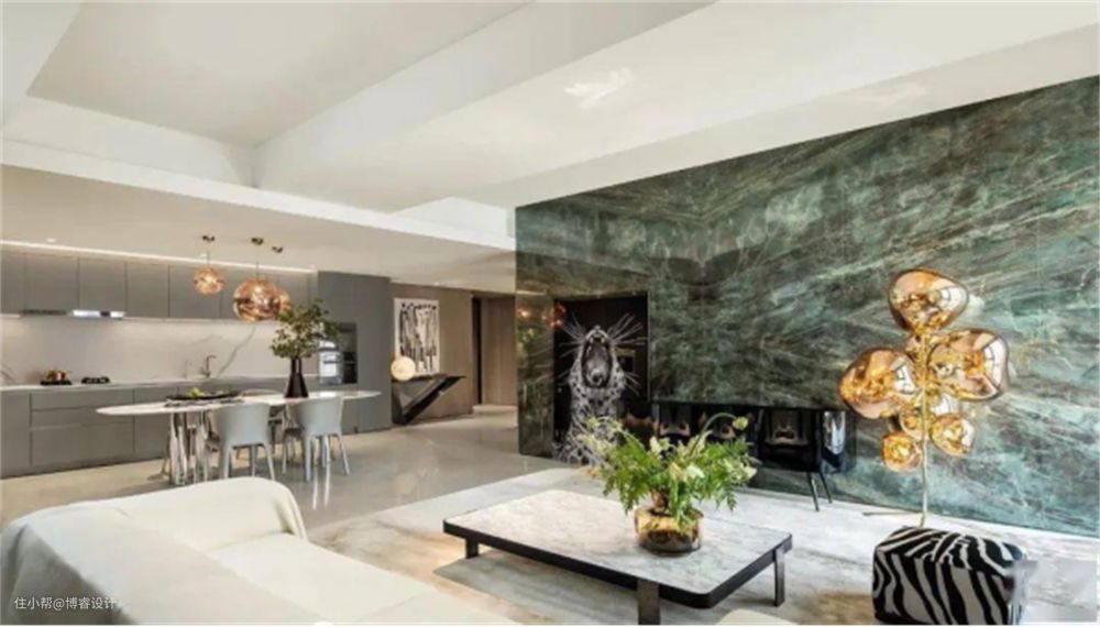 奢石在室内设计中被广泛运用在背景墙、台面、桌几等。由于奢石价格昂贵,大部分都是局部小范围使用,起到画龙点睛的作用。