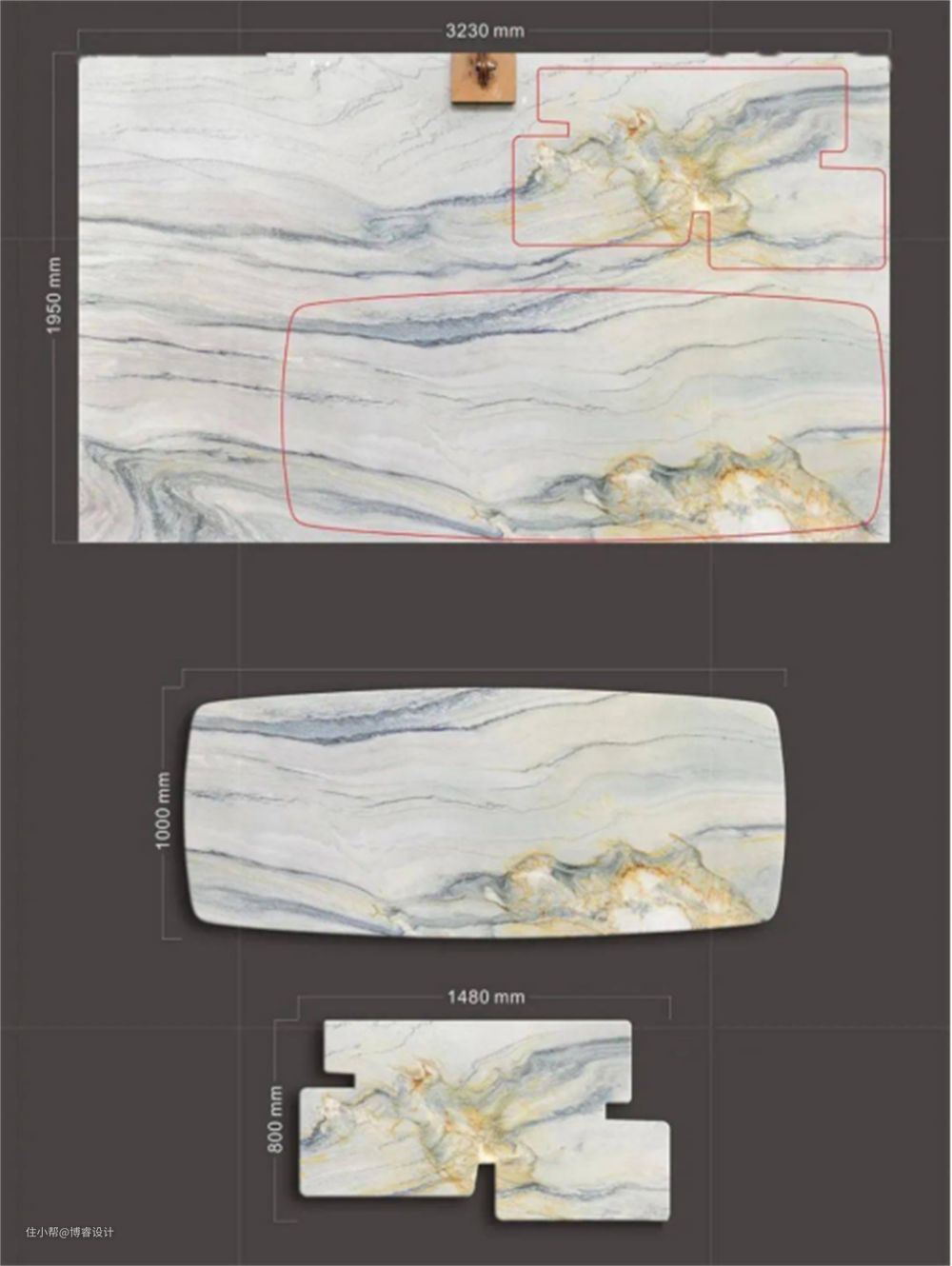 奢石大部分都是天然石英石,其硬度大部分在7以上,有的是8--9接近钻石10的硬度。切割难度是普通石材的3-4倍。需要特殊加强加工设备同时需要加工师傅有着丰富的经验,以及设计师对于板材的合理规划与设计才能最大化进行利用。