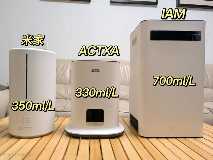 米家和阿卡驰的额定最大加湿量都差不多,在330~350ml/h,它们加湿20m²的房间都是毫无压力的。虽然IAM的额定加湿量最大可达700ml/h,但IAM这款是冷蒸发加湿器,冷蒸发加湿器有个缺点就是“加湿效率不稳定”。 受到加湿原理(模仿自然蒸发)的限制,冷蒸发加湿器的加湿效率会受水温、气温和相对湿度的影响,实际加湿量往往达不到宣传的数值。