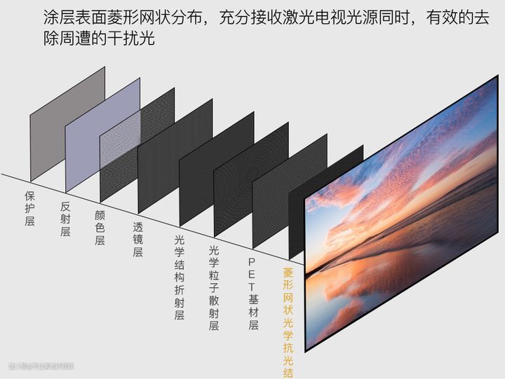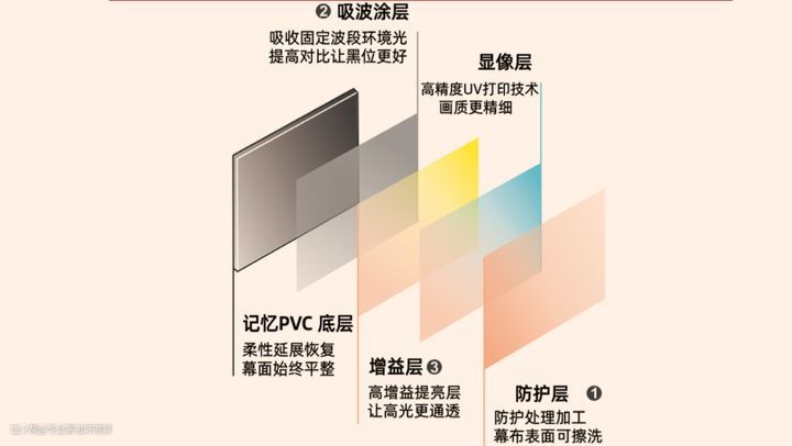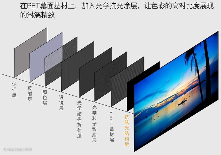 【艾瑞尔 超短焦 菱栅抗光硬幕 幕面分层图】
