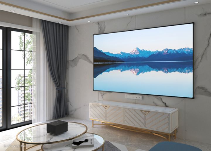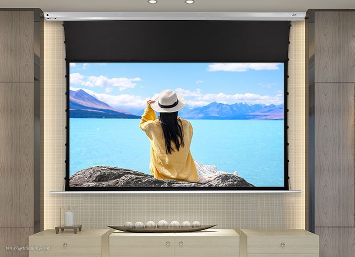 所以如果是公司用的话,买个壁挂幕就OK了;家用的话可以考虑电动拉线幕,空间不太够的话可以选择地拉幕布,如果是打算打造家庭影院的话,画框幕是个不错的选择。