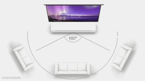 说直白点,就是我们坐在侧面时能看清楚投影画面的角度,就像电影院一样,并不是所有的人都能坐在屏幕的正前方。因为坐在幕布正前方观看时,画面亮度是最高的,效果也是最好的;而随着原理中心位置,画面亮度会随之下降。