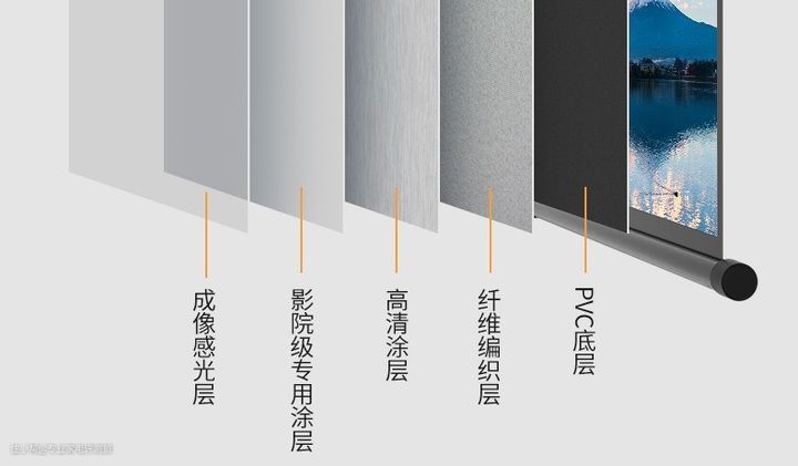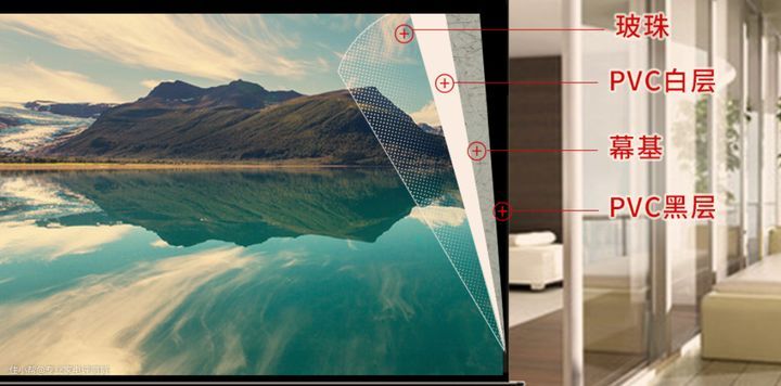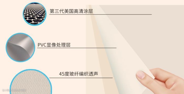 一般由由纺织线编织的底布、面层和投影涂层构成,整体幕布表面有丰富的纹理。