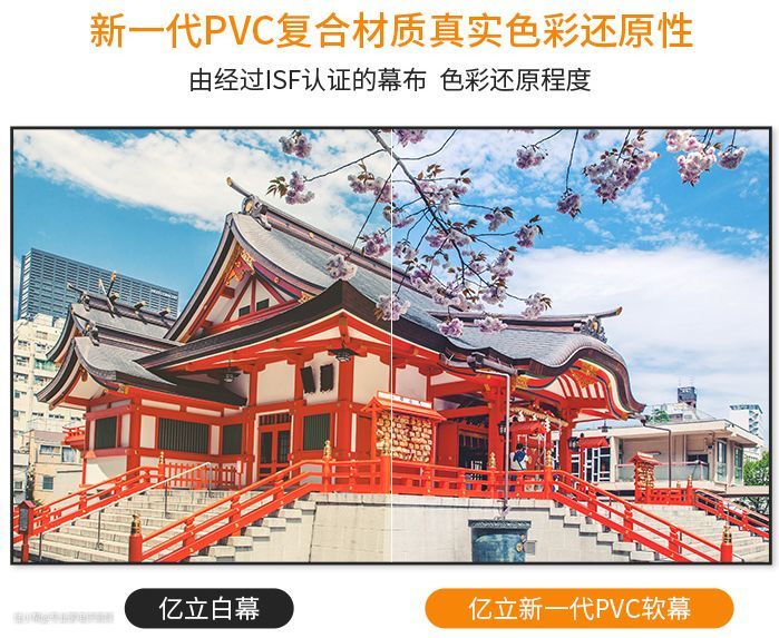 亿立作为美国老品牌,品质还是非常有保证的。使用的是亿立新一代的高弹性PVC复合基材,因此幕面更加平整细腻,色彩还原度高。