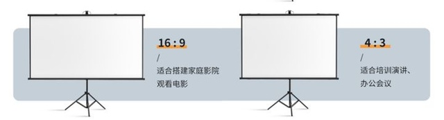 幕布比例有1:1、4:3、16:9、2.35:1这四种规格,但市面上大多智能投影的投射画面比例为16:9,因此家用的话选16:9即可,两者刚好搭配。
