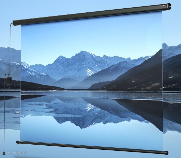 算是最便宜的一种幕布,而且不需要考虑屋内布局,墙体结构,展开后直接挂在墙面或配合支架就能用。多为白塑或者玻纤材质,容易褶皱,平整度一般,比较适合办公室,或者家庭环境空间实在有限,预算有限的朋友们购买。