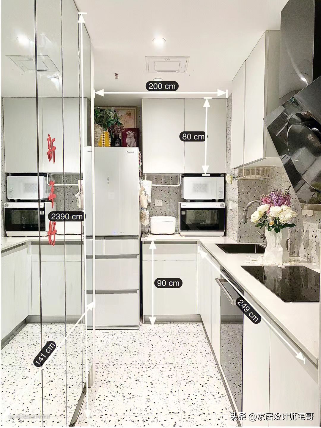厨房在进门右侧的位置,是半开放式的L型设计,操作空间非常充足。