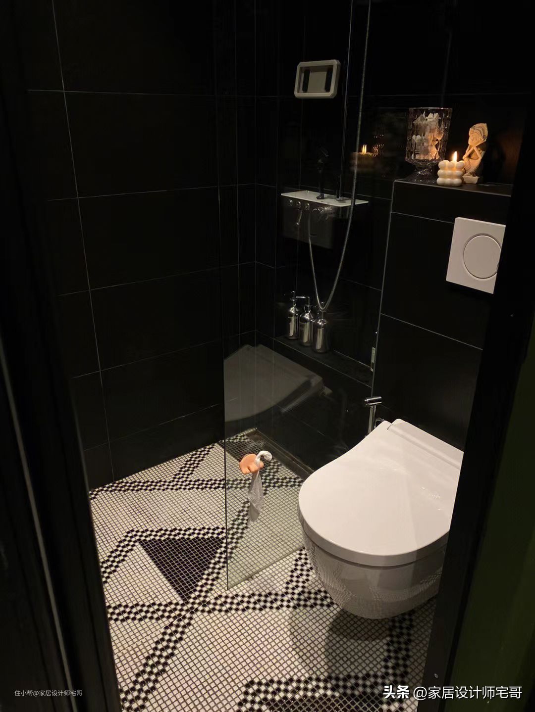 淋浴区和如厕区中间用玻璃作为隔断,这一样既不会影响卫生间的通透性,还卫生又干净。