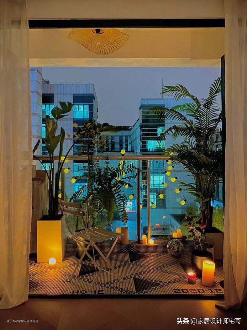 阳台的布设是清新的田园风格,尤其是夜晚,再加上一些氛围灯的点缀,就在这里望着外面的美景,甚是美妙。