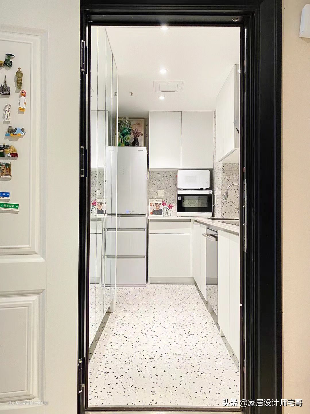 厨房左侧预留了冰箱的位置,整体打造出一体化的视觉效果,小小的空间也超级实用。