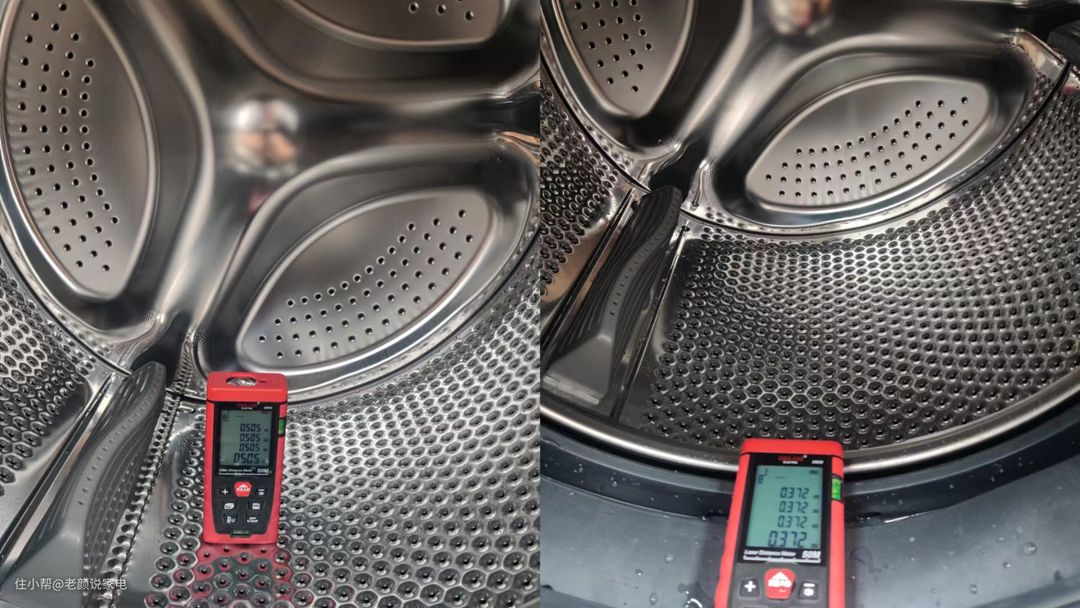 通过测距仪可以发现洗衣机的内筒高度和深度分别为505mm和372mm。