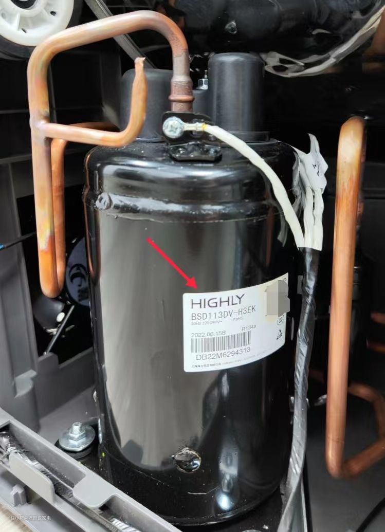 压缩机使用的海立压缩机,海立是国产老牌,在质量上有保证,使用的海立压缩机的排量为11.3cc,已经算是大排量的压缩机了,排量与性能有很大的关系,排量越大意味着性能越好,但是合适就好,没有必要过于追求大排量,因为排量越大意味着耗电量越多,并且烘干效率还会受风道、风扇风速、正反转等影响。