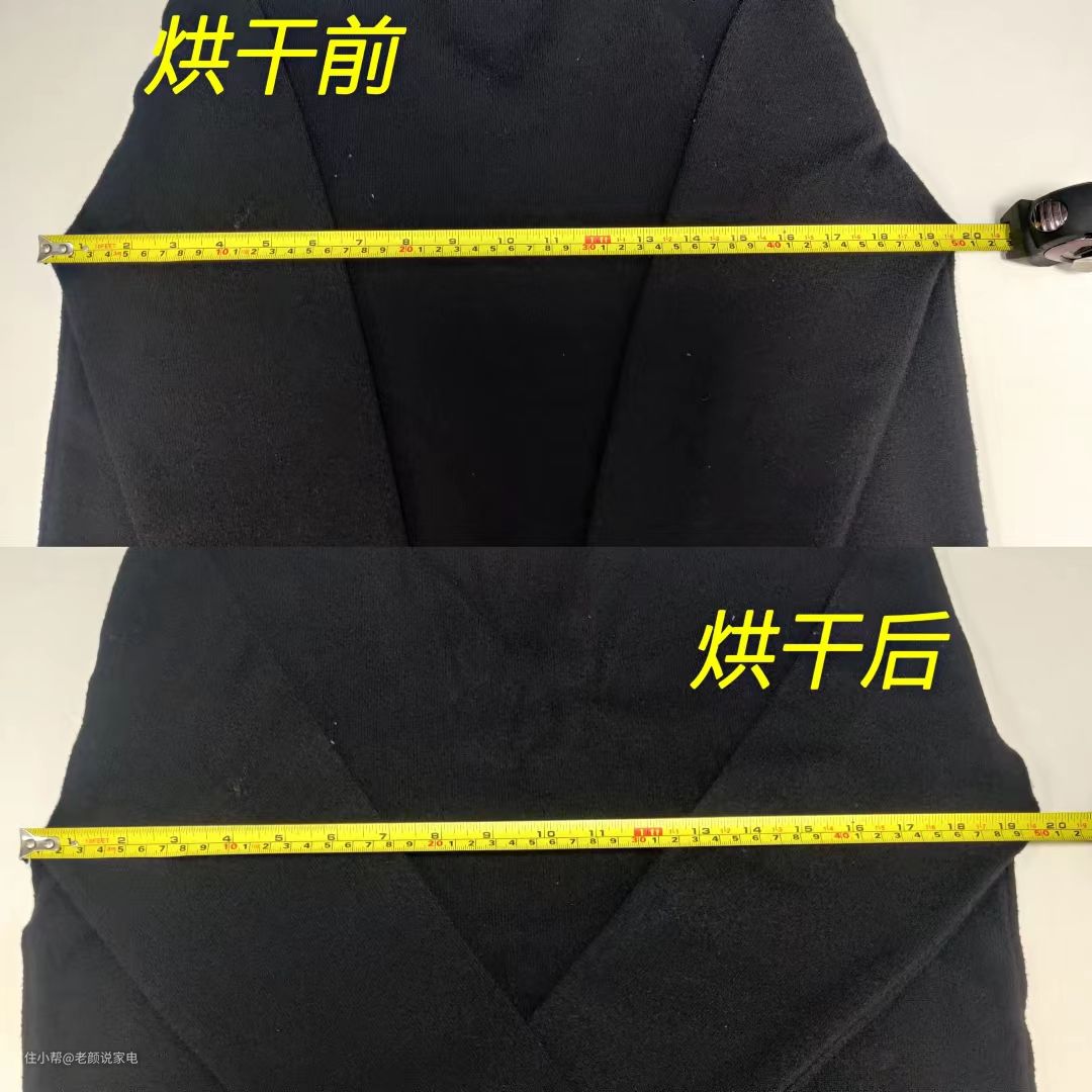通过以上对比,我们可以发现无论是羊毛衫的烘干效果还是对羊毛衫的衣物保护程度都是比较好的。衣物都没有出现缩水、变形的情况,并且经过羊毛烘程序烘干后,衣物没有出现衣物褶皱、抽丝和褪色的情况,而是变得比烘干前更加柔软、有弹性。