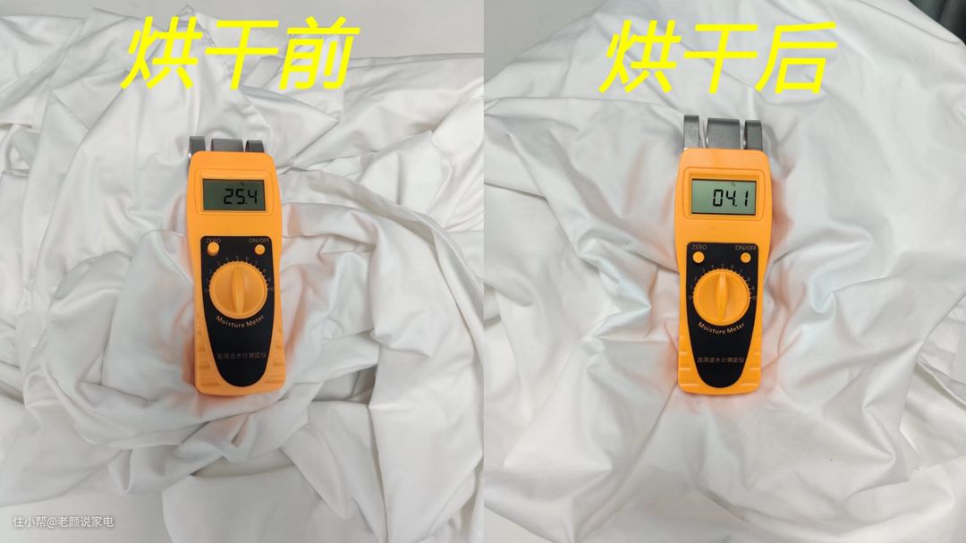 上图所测衣物含潮率从22.4%降至4.0%,测试的结果比较优秀了,衣物已经可以直接上身穿或者是储藏了。