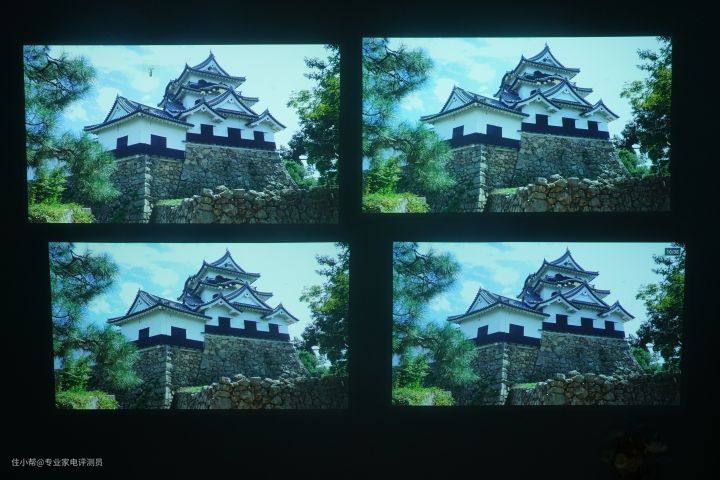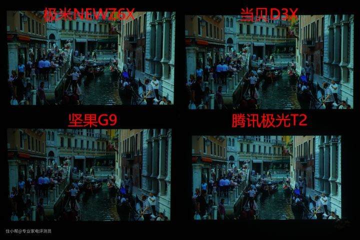上面这幅假窗挑战的画面能够很明显看出四款产品的调色风格,个人还是最喜欢极米NEW Z6X。