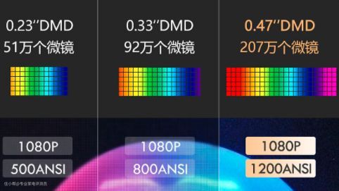 对于DLP显示技术的投影仪来说,分辨率和显示芯片的尺寸密切相关。其他条件相同的情况下,显示芯片尺寸越大,画面清晰度也就越高,当然价格也越贵。