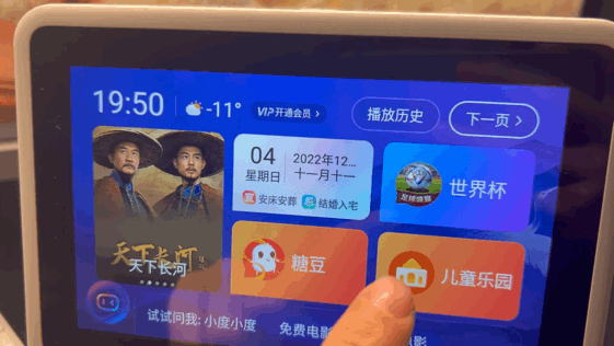 考虑到夜深人静时不方便语音控制,小度在家1S还增加了手势控制功能,一个手势就能控制播放暂停。