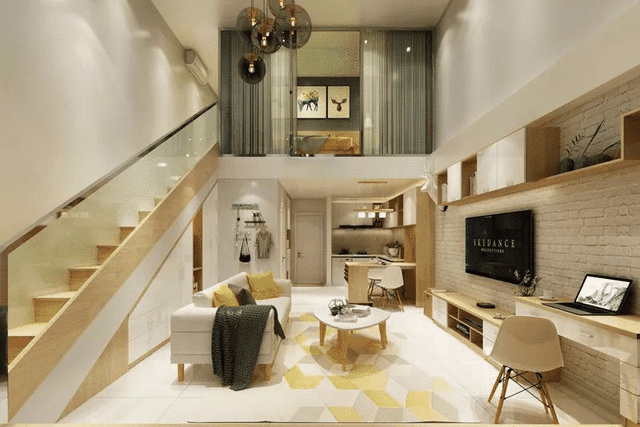 #复式公寓楼梯装修 说到买公寓,究竟有多少人觉得可以入手?有很大一部分人是更愿意购买住宅的,但是商住两用型公寓,可以接通天然气管道的,你会感兴趣吗?@合抱木装饰