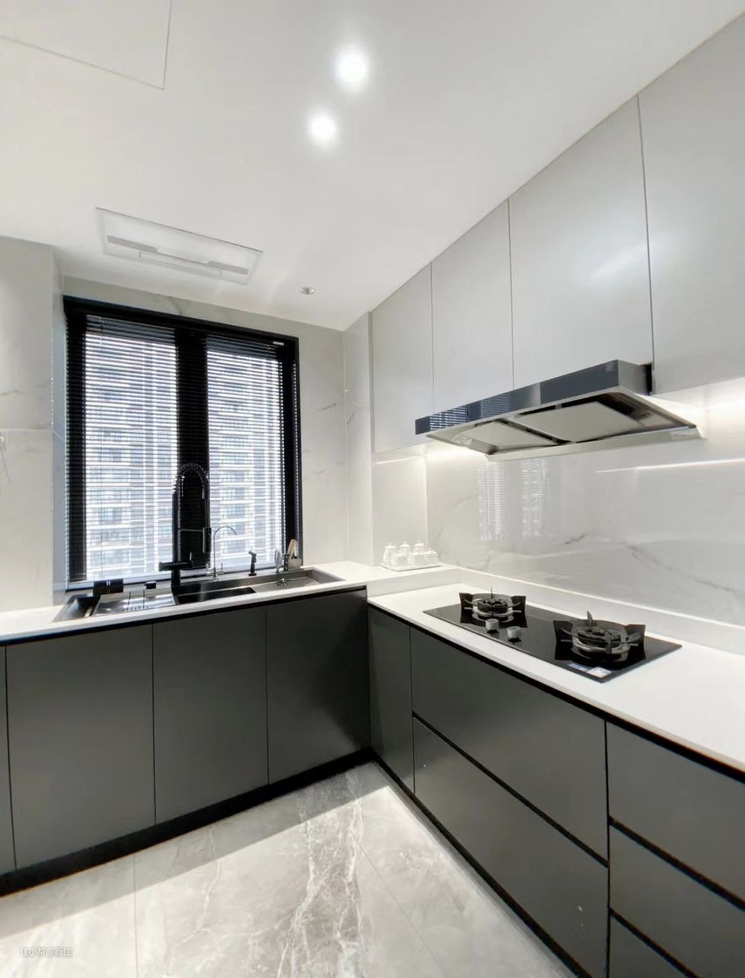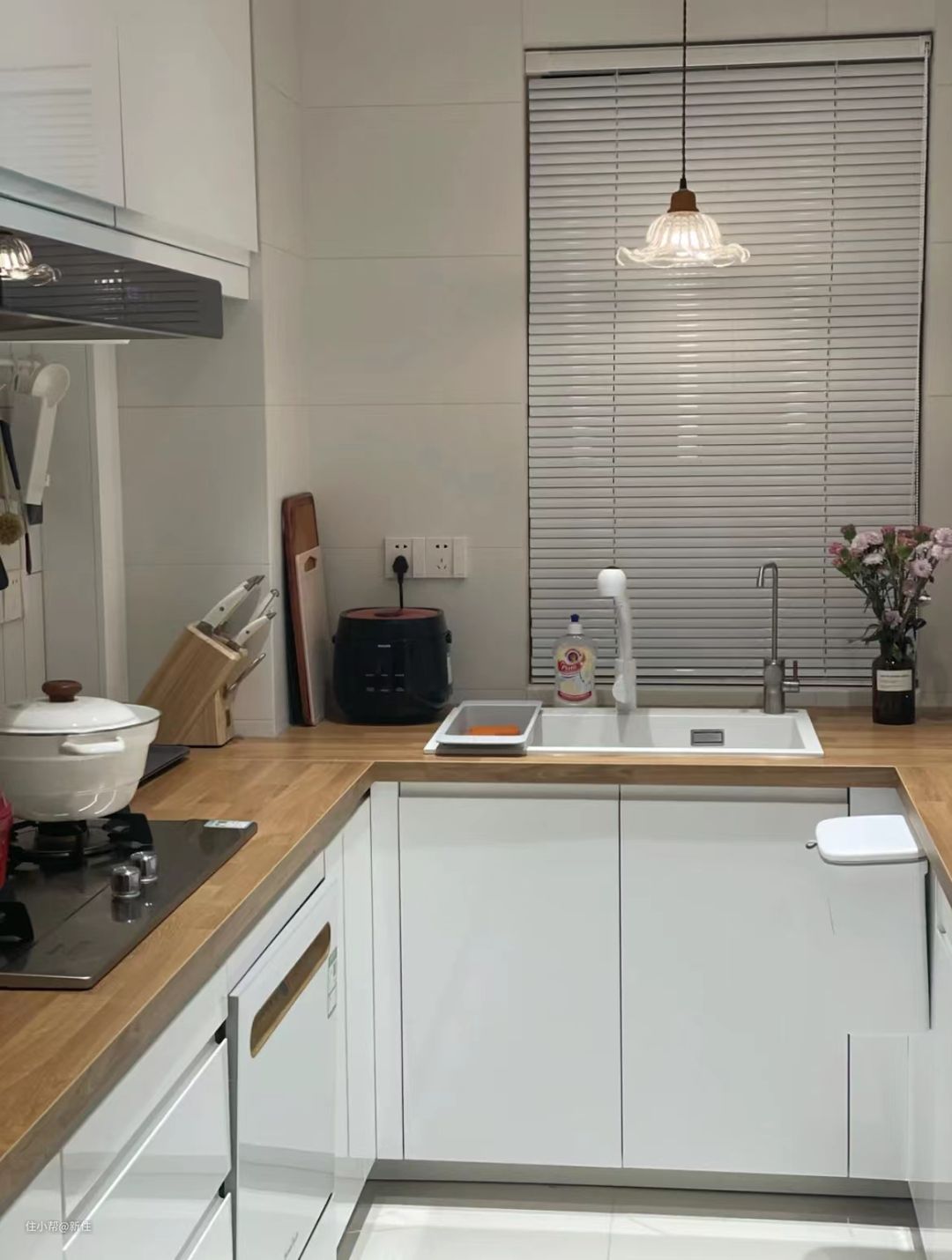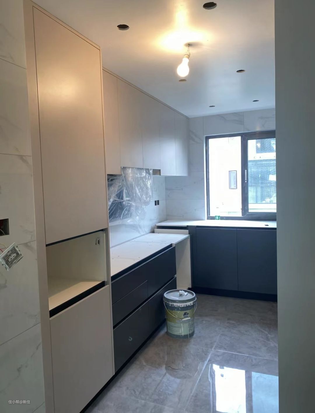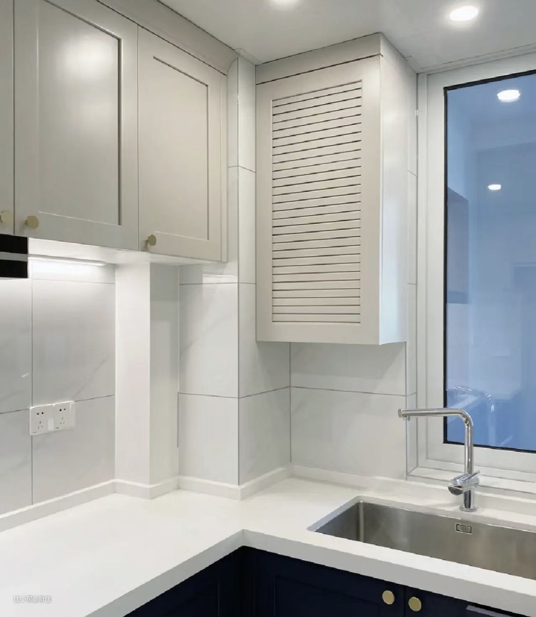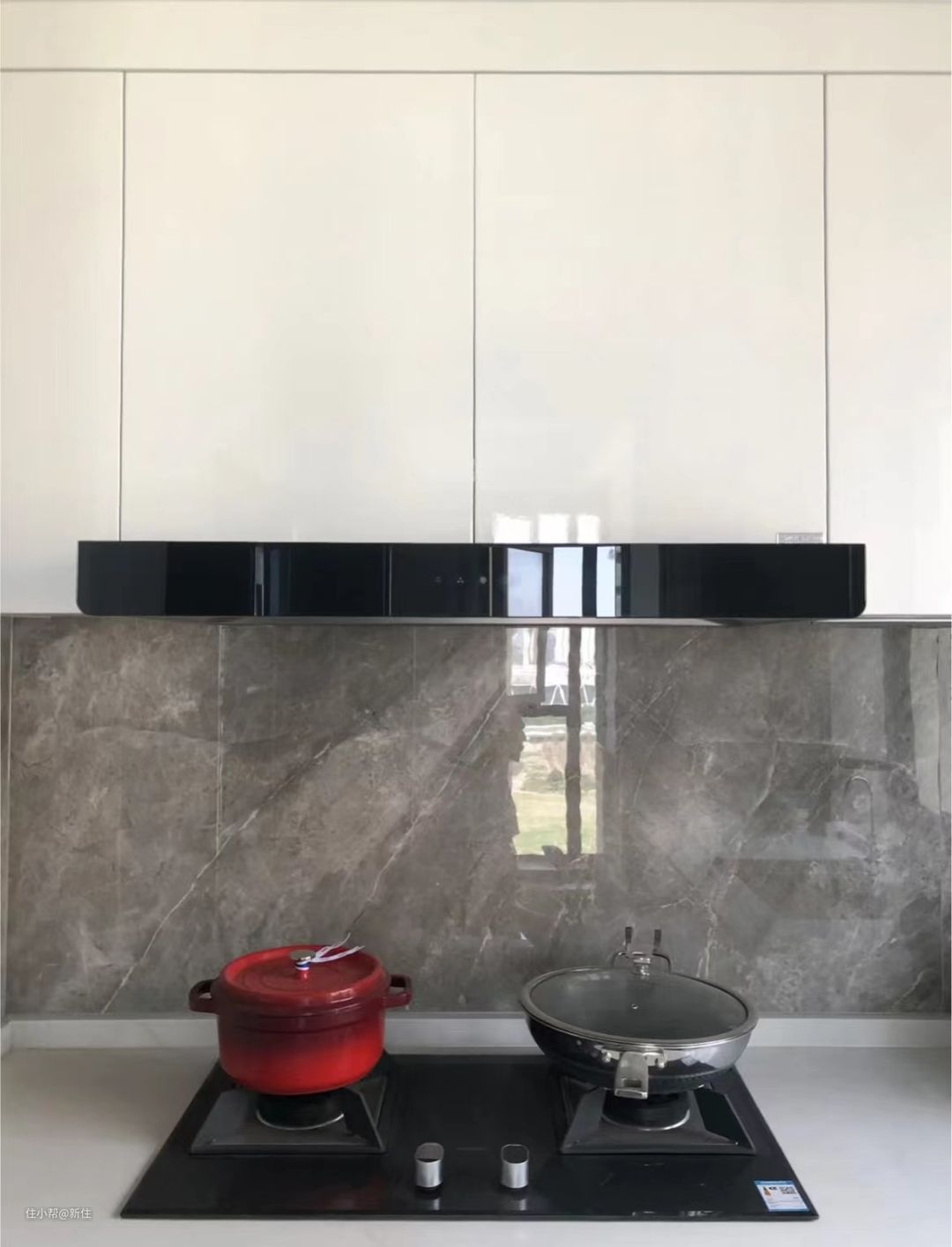 新住小tips:橱柜门板除了实木门板其余材质都可以,比材质更重要的是造型避雷,容易过时还卡油污,选择平板门简约大气。