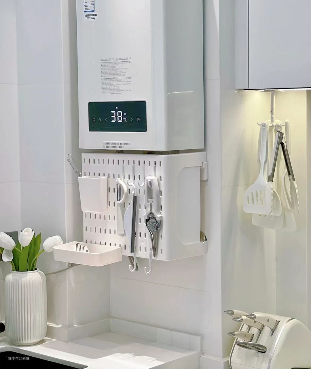 另外安装也方便,基本上管道遮丑的洞洞板都会配置磁吸挂钩,利用热水器是金属的优点,不用打孔就能实现安装,还能随时取下来,不管是清洁还是后期维修也都方便。