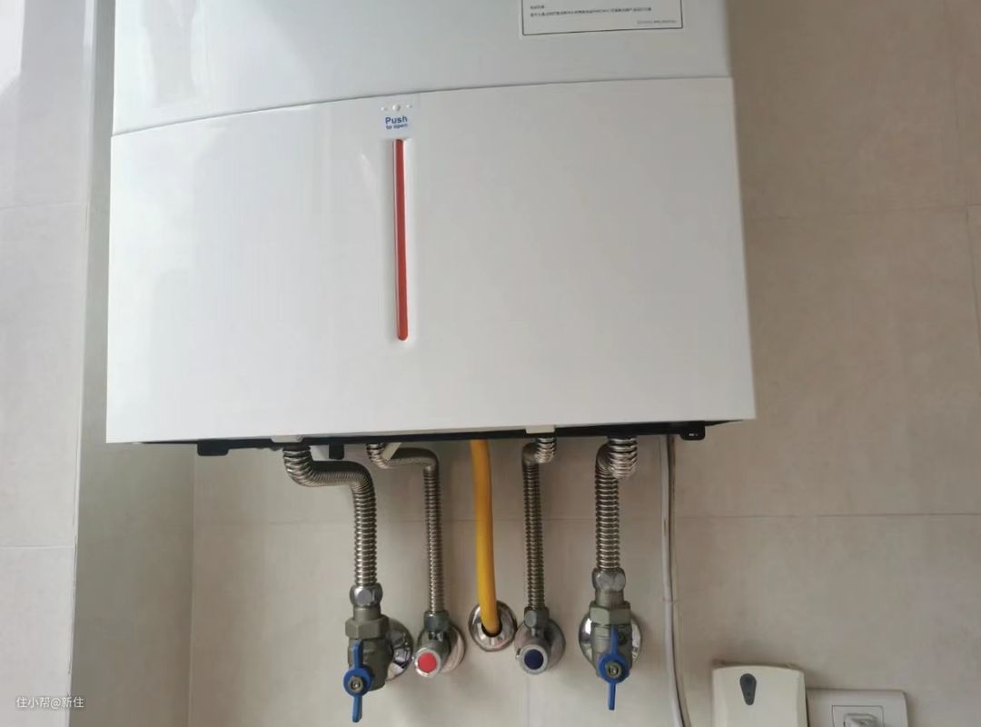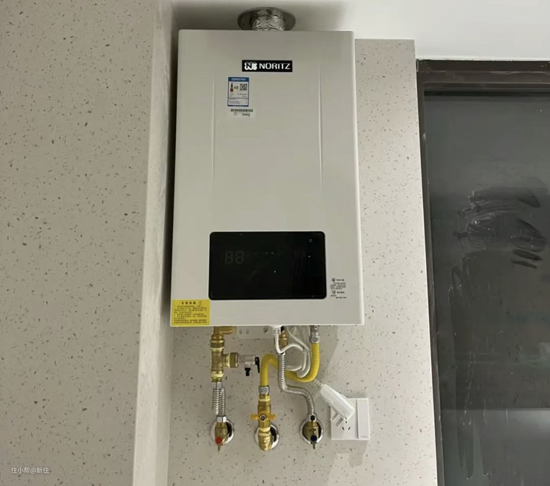 新住小tips:热水器上半部分方正且光滑,其之所以有种凌乱感,主要因为下半部分的管线,若真想更美观,可以从下半部分管线入手。