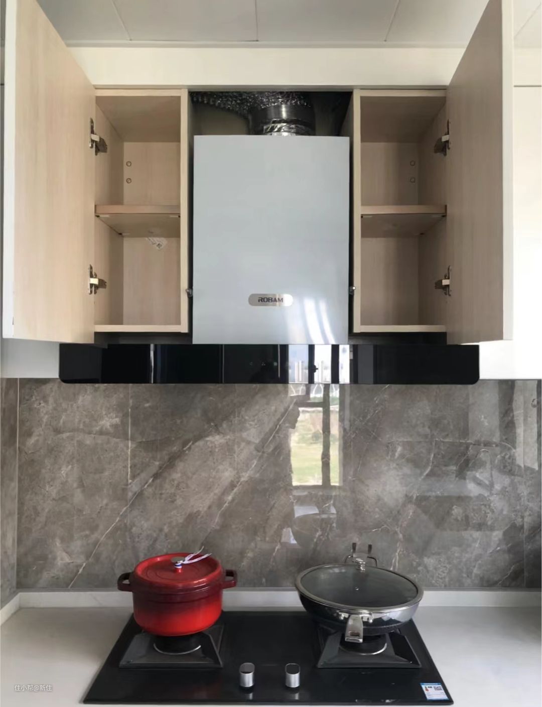 关于热水器隐藏方案,有很多人建议在厨房定制柜时,算上热水器。
