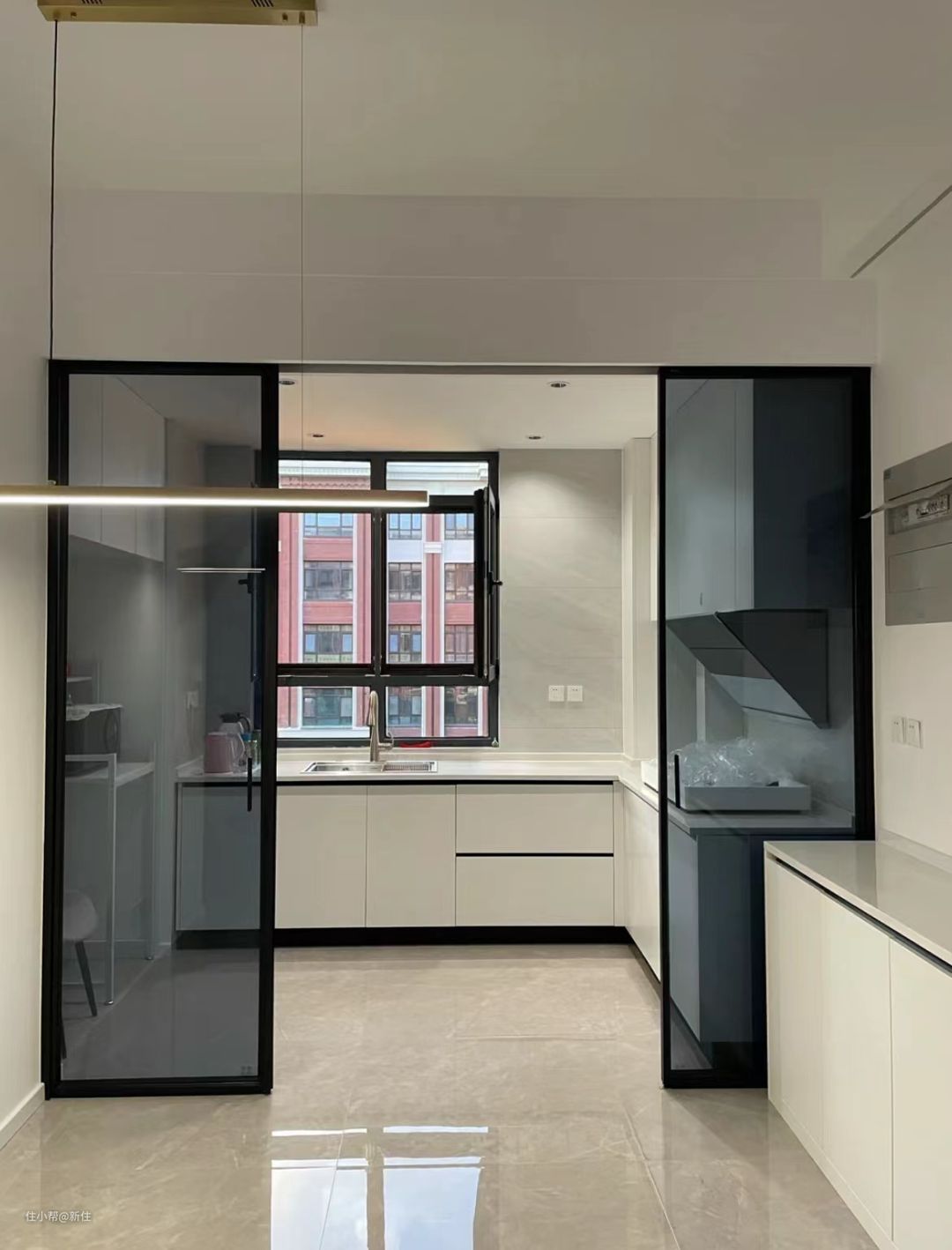 考虑到厨房推拉门,下面都是厚厚的轨道+凹槽,很多新装修的家庭,选择用极简轨道,代替传统轨道。
