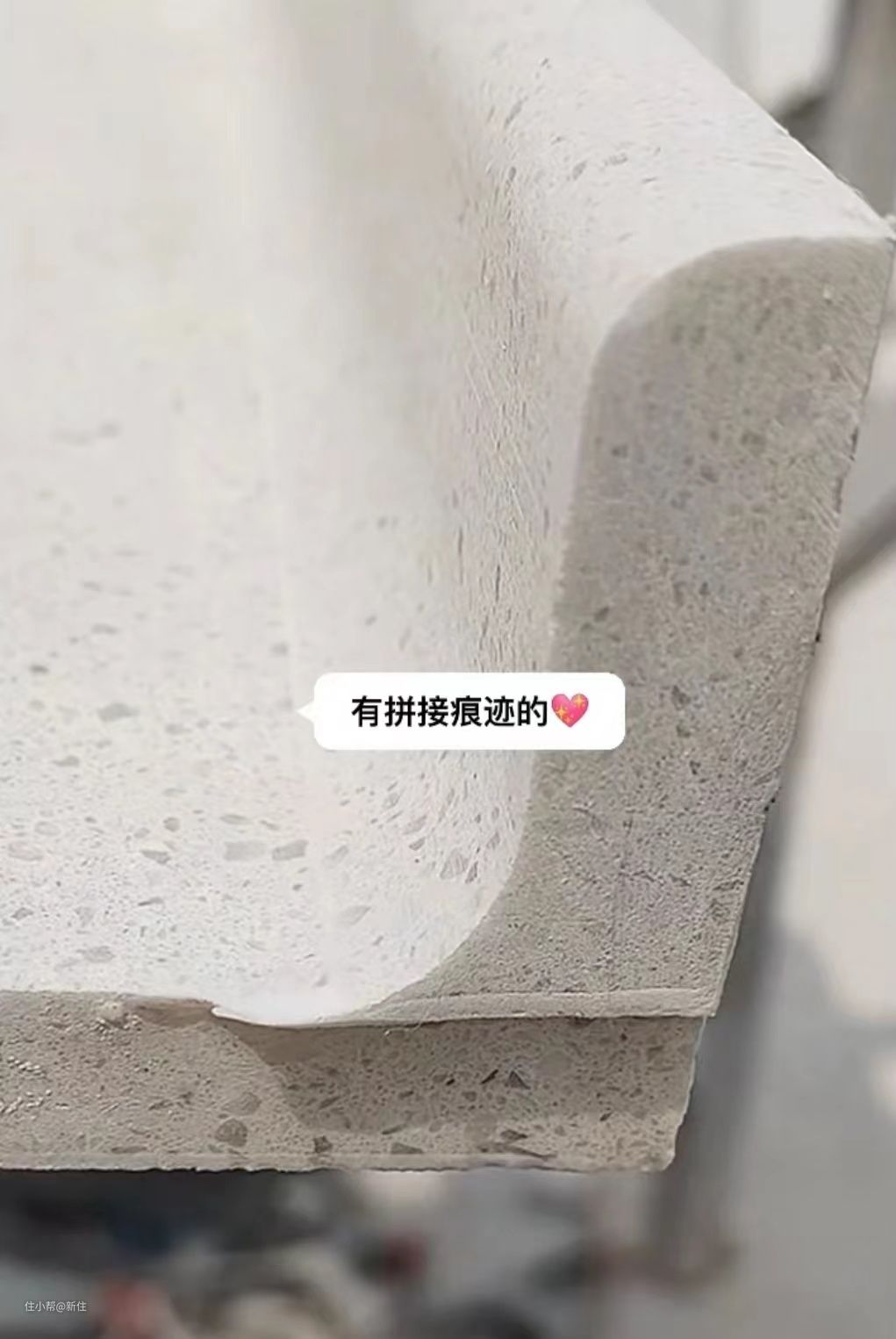首先,能做成圆弧的挡水条的台面是人造石,相比石英石,人造石唯一的优势是便宜,可价钱便宜,耐造程度、防渗率都不行,这不做了个寂寞吗?