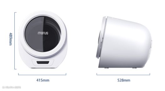 从尺寸上看,最直观的区别就是相对于热泵式烘干机,木卫C1为小型烘干机,占用空间小,摆放在洗衣机上面刚刚好,并且可以根据自己的需求随意更换摆放的位置,因为它不需要安装。
