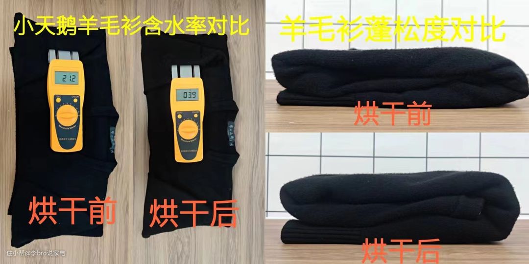 写这篇文章时,碰巧临近秋冬季节,针织类衣物是我们在秋冬季节时常需要穿戴的,所以接下来我们测试一下三台机型在对针织衣物的烘干上的效果。