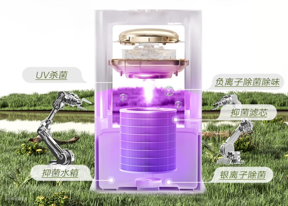 抑菌除菌也很给力,抑菌滤网+抗菌水箱+银离子杀菌+UV杀菌+负离子组成的五重抑菌方案,能有效防止细菌滋生,除菌率高达99.9%。工作时释放的高浓度负离子,可以主动击落粉尘,除菌除味,加湿的同时还带有净化空气的效果,对小孩、老人、鼻炎患者等呼吸道较敏感的人群很友好。