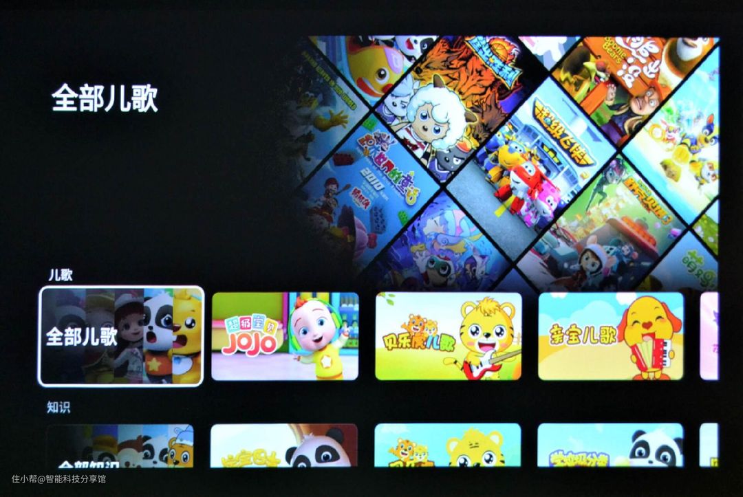 家有儿童的伙伴,可直接进入亲子坊,里面有很多精选好看的儿童视频,可直接观看,另外还有进行分类,比如有儿歌、故事、知识类的,从下面的画面可以看出投影画面非常清晰,而且是漫反射,相对手机、平板来讲更护眼,当然也要注意孩子的使用时间。