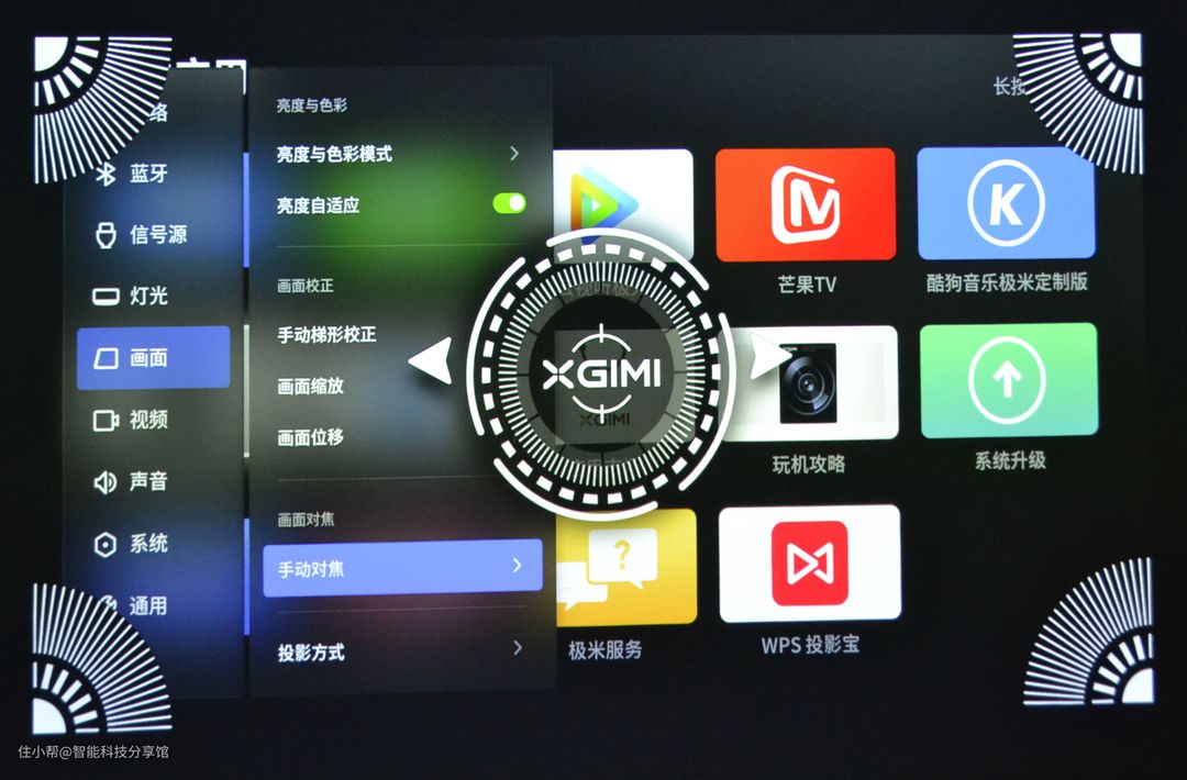 极米神灯也是开机即用的,画面是在安装的时候就调控好的,打开投影即方正清晰的画面。当然啦,根据不同的情况和需求,也可以再进行手动校正与对焦调节。