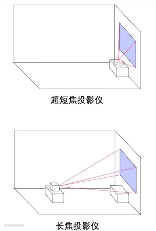 短焦距:屏幕离投影仪偏近,适合小空间使用 标准焦距:适合大部分家庭的使用 长焦距:屏幕与投影仪偏远,适合大空间使用。